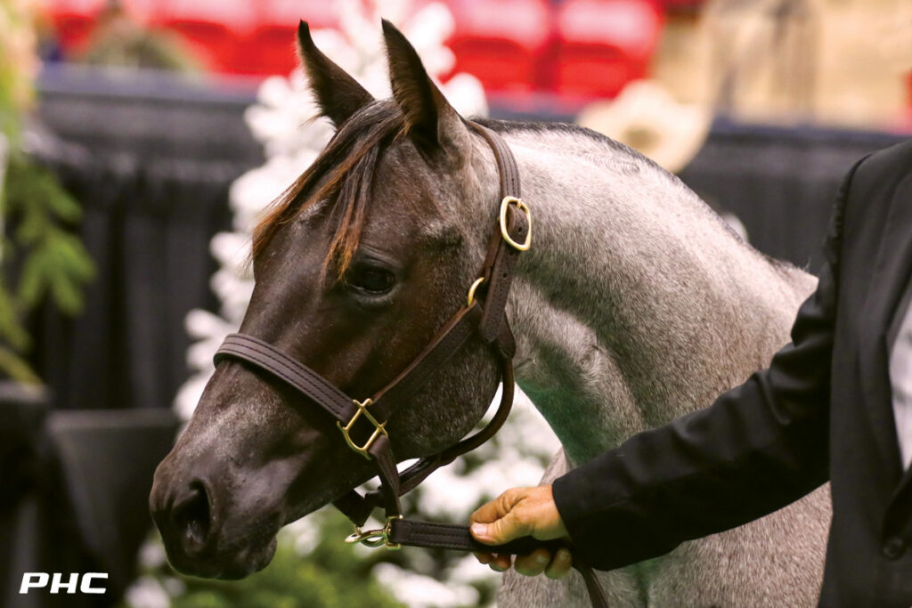 Missy Von, a yearling blue roan filly sired by Stevie Rey Von, brought $405,000, the Preferred Breeders Sale Session IV’s highest price. Bred and consigned by Slate River Ranch, Missy Von is a full sister to 2022 NCHA Futurity Open finalist and Open Gelding Champion Wombatt LTE $127,912, among 13 money earners of $1,005,321 out of Play Miss LTE $180,165, including NCHA multiple major event Non-Pro Champion Flash About LTE $246,087.